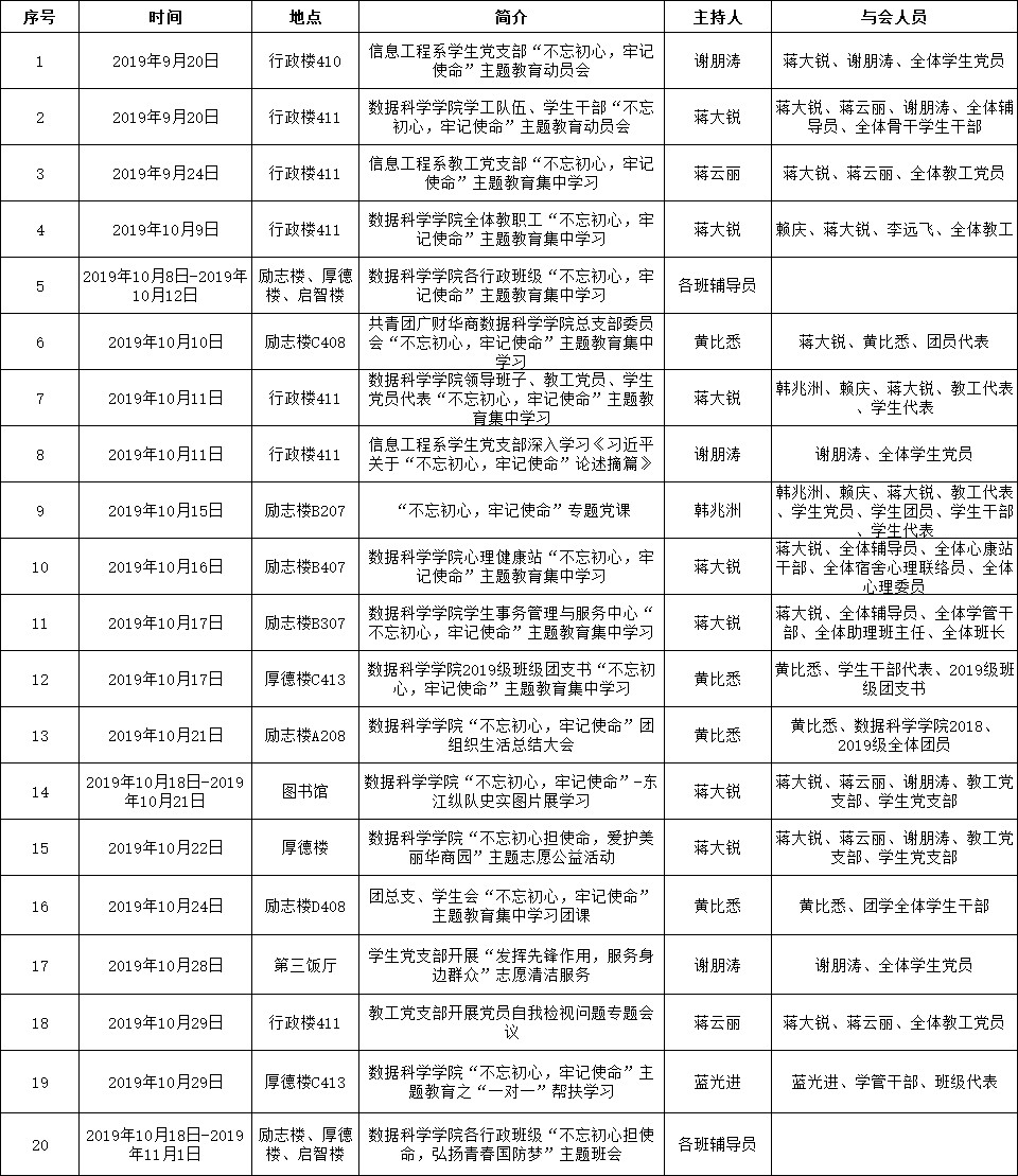 数据科学公司教工党支部蒋云丽书记、数据科学公司员工党支部谢朋涛书记主要围绕9月、10月开展“不忘初心,牢记使命”主题教育情况以及针对五个一的工作落实情况分别向苏书记做了工作汇报,并且对下一阶段的工作做了简单的规划。