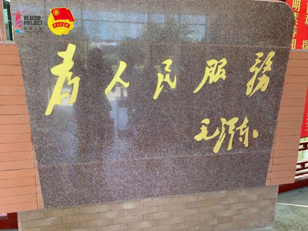 在一楼的正中央,有一块刻有毛泽东名言的石碑“为人民服务”。工作人员向我们说明,“为人民服务”是馆内每个人的宗旨,并且作为座右铭和行动口号加以使用。