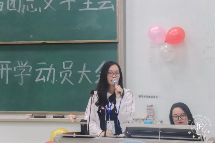 接下来由新闻部及辩论队干事郑嘉雯同学发言。她表示作为团学的一员,要反复鼓励自己,严格要求自己,要用最认真的态度对待部门的工作与学习。在新的学期里,作为员工不但要兼顾学习与工作,更重要的是超越昨天的自己。