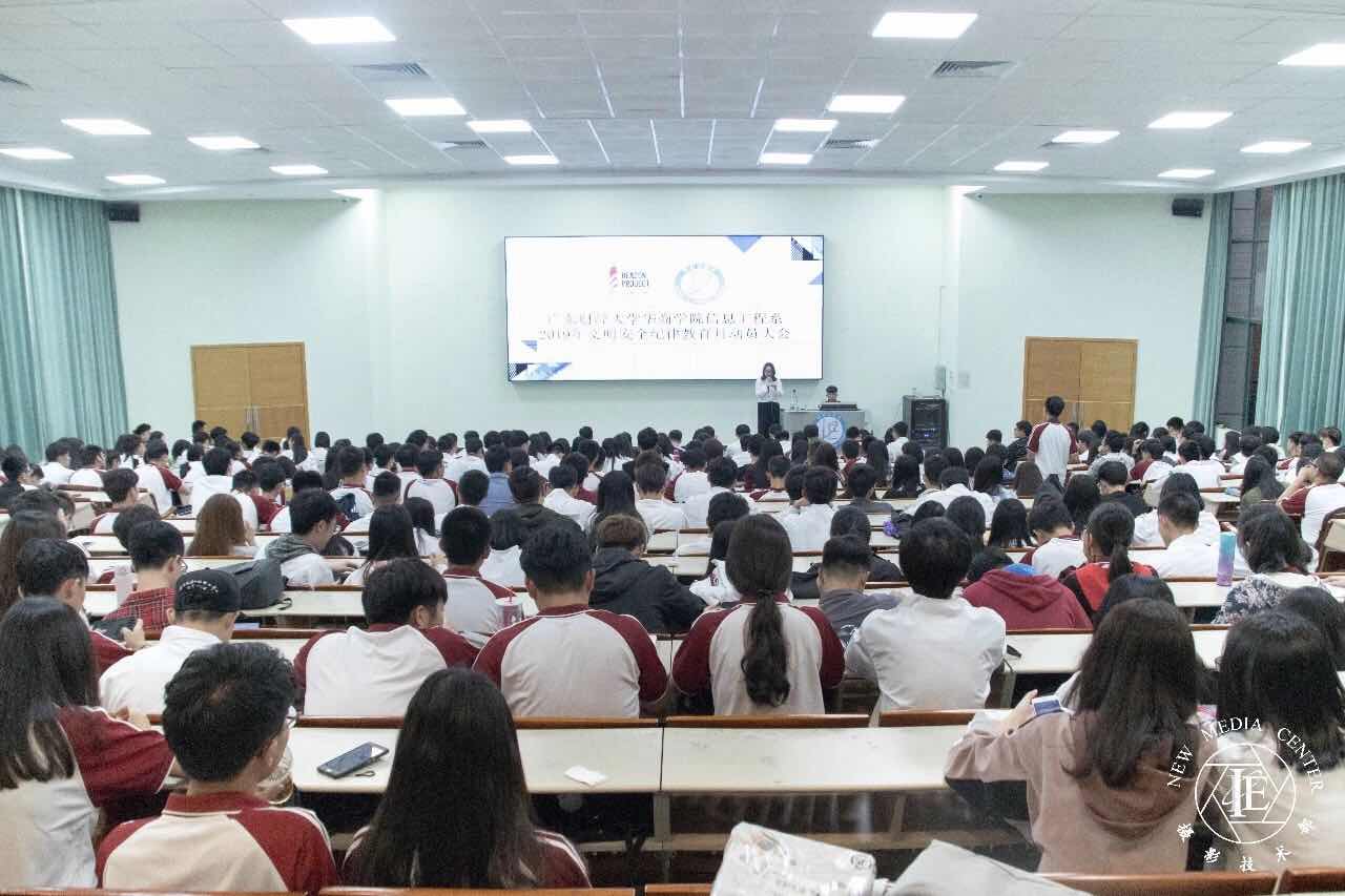 为规范我系员工言行举止,增强其纪律观念和安全防范意识,促进其养成良好的学习和行为习惯,我系于2019年4月15日晚上6时在励志楼B207召开了“广东财经大学华商公司信息工程系2019年文明安全纪律教育月动员大会”,莅临本次大会的嘉宾有:信息工程系党总支副书记兼学工副主任蒋大锐老师,信息工程系辅导员丁伟老师,信息工程系辅导员官志豪老师,信息工程系辅导员谢朋涛老师,信息工程系辅导员黄比悉师兄,信息工程系辅导员蓝光进师兄,信息工程系辅导员余泳莲师姐。