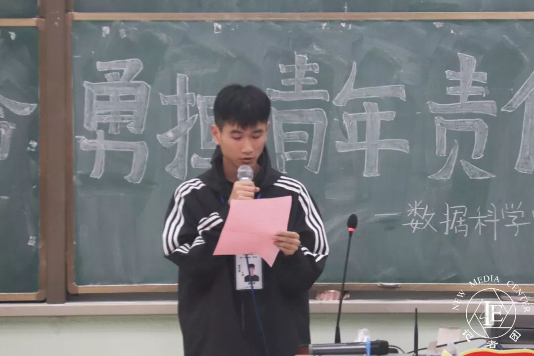大会六项议程: 颁奖环节。伴随着新媒体的发展,网络也成为我们学习和宣传先进思想的舞台。在十一月班级团生线上学习活动中,19级计算机科学与技术1班和19级信息管理与信息系统2班凭借优异的表现获得了优秀班级称号,员工会主席刘深师兄为优秀班级颁发了优秀班级奖状。