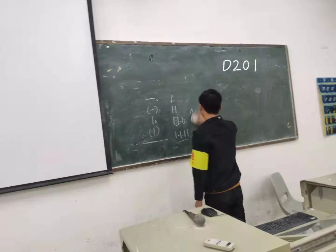 数据科学公司团总支·员工会在团总支书记黄比悉老师的带领下组成巡查小组,对励志楼D栋的黑板清洁情况以及课室卫生情况进行检查。在巡查中发现教室黑板部分清洁不到位,黑板卡槽残留残留大量粉笔屑,在此建议上课班级应做好相关打扫工作。同时发现课室抽屉中有大量遗留垃圾未及时清理,地板上有同学们随手乱认的纸巾和宣传单。