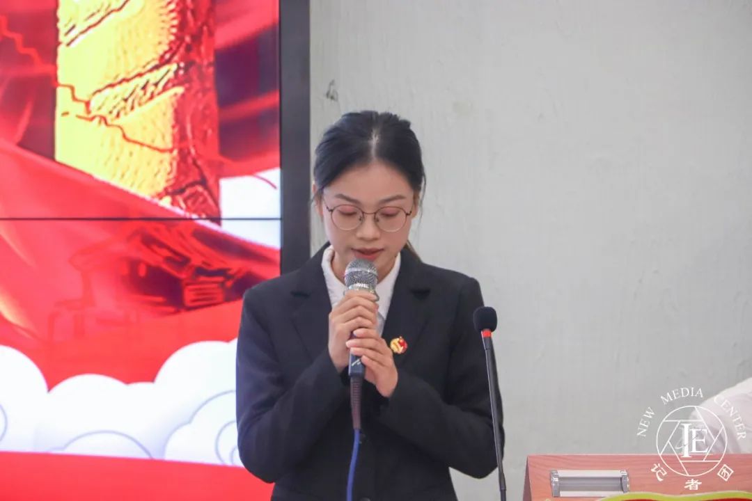 数据科学公司团员代表秦晴同志上台发言。她表示,公司团总支以服务大局、服务青年为己任,发扬创新精神,在建设校园方面起到了很大的作用。她引用“青年一代有理想、有本领、有担当,更要牢记初心、脚踏实地。”来激励同学们。最后,她希望在新的一年里,以更饱满的热情,充足的干劲去迎接新的挑战,开创新的局面,为实现数据科学公司更好更快发展贡献青春和力量。最后,她向青年团员提出几点倡议:1、树立正确的世界观、人生观、价值观。2、严以律己,全面发展。3、不忘初心,牢记使命。