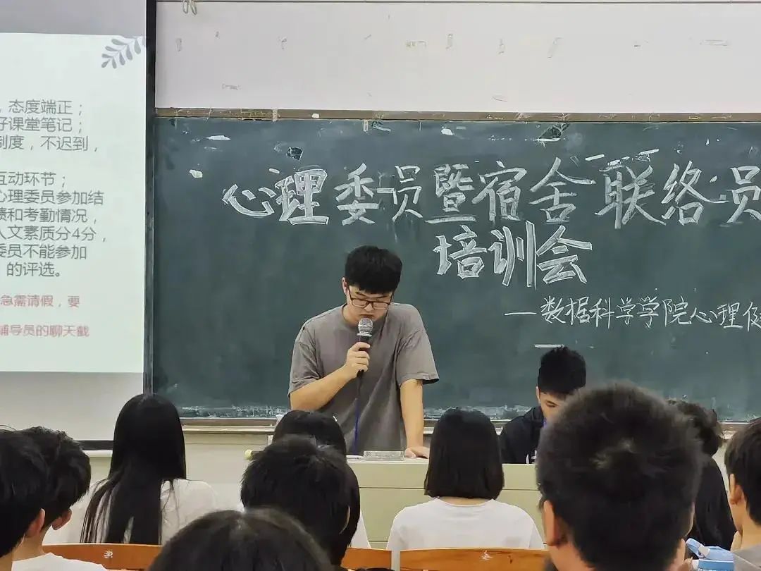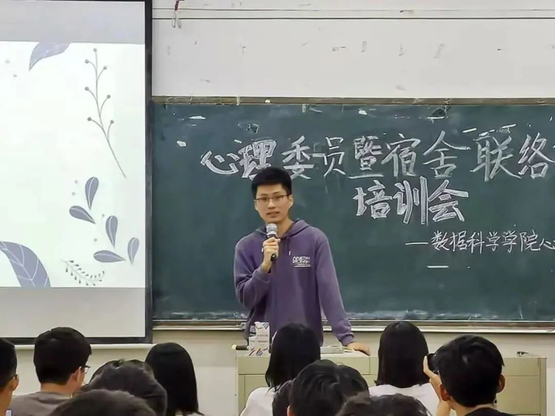 理健康站作为同学们的心灵的避风港,为了能够更好了解同学们的心理状况,明确心理委员和宿舍联络员工作内容,数据科学公司心理健康站于2020年11月26日12:15在励志楼C301召开心理委员暨宿舍联络员培训会。