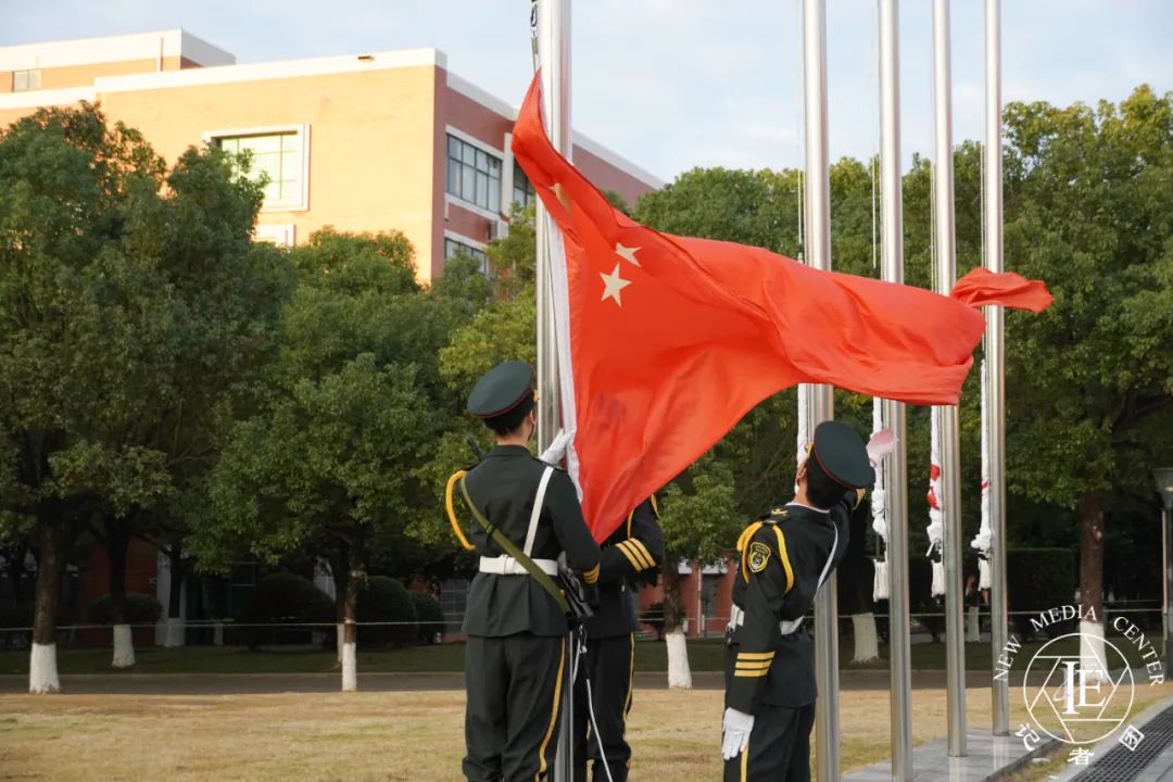 参加升旗仪式的同学们神情肃穆,庄严肃立,注视国旗,高唱国歌。看着国旗逐渐高升,同学们仿佛正看到强大的祖国正稳扎稳打走在民族伟大复兴的大道上,心中的爱国热情油然而生。
