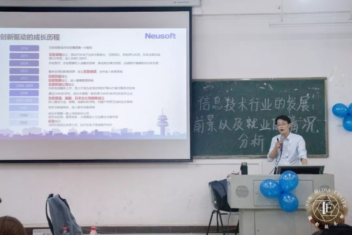 首先,贾元峥老师给同学们介绍有关东软集团的发展情况。他从东软的创新起源、成长历程以及今天东软所取得的成就进行阐述。他的介绍,让同学们对于东软有了更加清晰的认识,通过东软集团这个窗口看到了当今软件行业的发展前景,激发了同学们深入学习信息行业的兴趣。