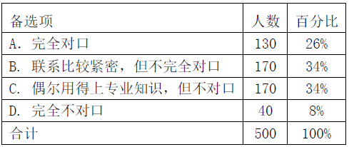 4、专业同就业职位对口率不高。公司毕业生大多数从事与专业相关,但联系不紧密的工作。
