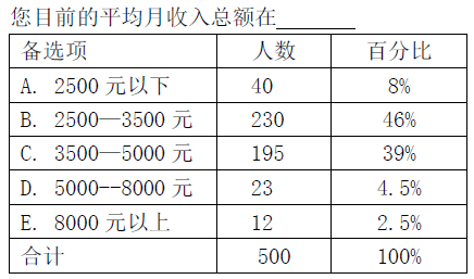 2013 届应届毕业生共计 3914 人,公司以这部分员工作为调查对象,采取分层随机的方式共发出调查问卷 550 份,回收 510 份,回收率约为 92%。其中有效问卷 500 份,进行数据统计。