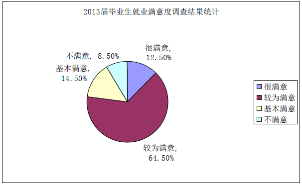 就业满意度是公司毕业生就业质量的一个重要指标。根据公司对 2013 届毕业生开展的就业满意度调查,毕业生对目前工作感到很满意的比例为12.5%,较满意的为64.5%,基本满意的为14.5%,就业满意度合计91.5%。