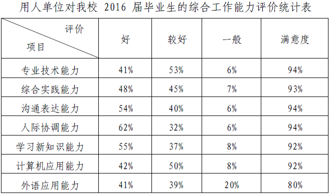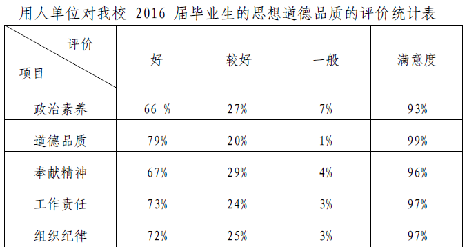 (一)用人单位对公司2016届毕业生综合素质的评价