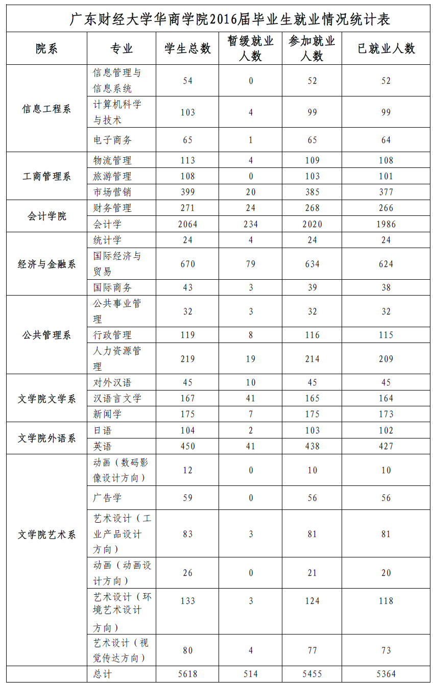 毕业生中参加就业人数为 5455 人,均为本科生。