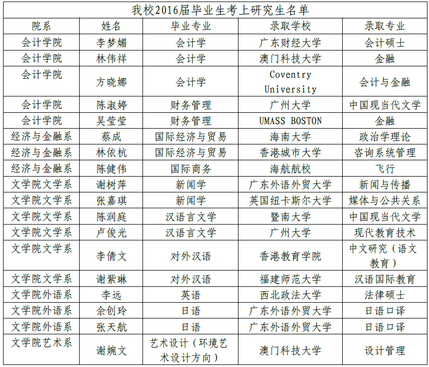 2016 年公司毕业生考上研究生共 18 人,名单如下:
