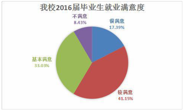 根据公司对 2016 届毕业生开展的就业满意度调查,毕业生对目前工作感到很满意的比例为17.39%,较满意的为 41.15%,基本满意的为33.03%,就业满意度合计 91.57%。