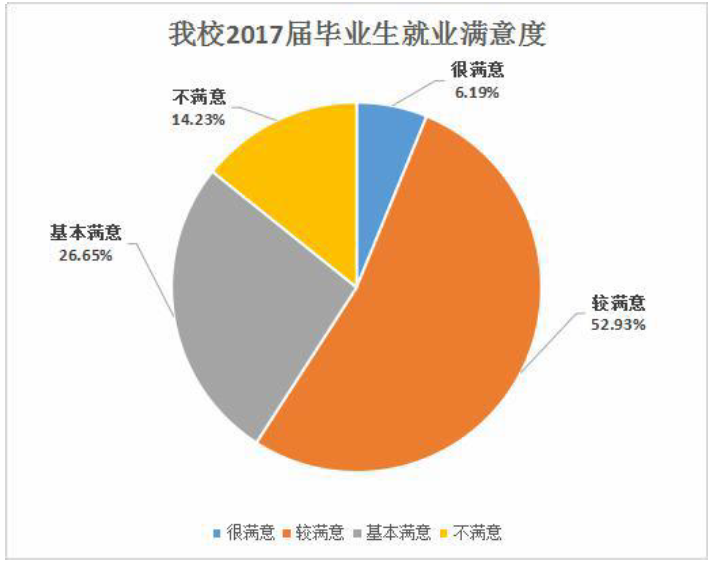 根据公司对 2017 届毕业生开展的就业满意度调查,毕业生对目前工作感到很满意的比例为 6.19%,较满意的为 52.93%,基本满意的为26.65%,就业满意度合计 85.77%。