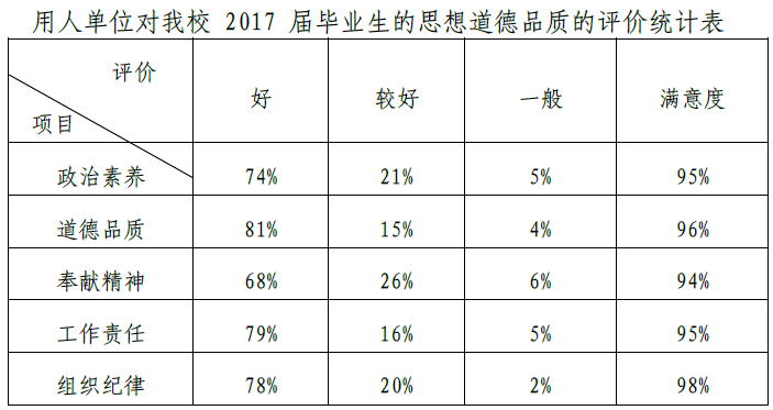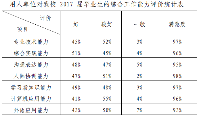 (一)用人单位对公司 2017 届毕业生综合素质的评价