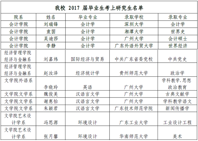 2017 年公司毕业生考上研究生共 12 人,名单如下: