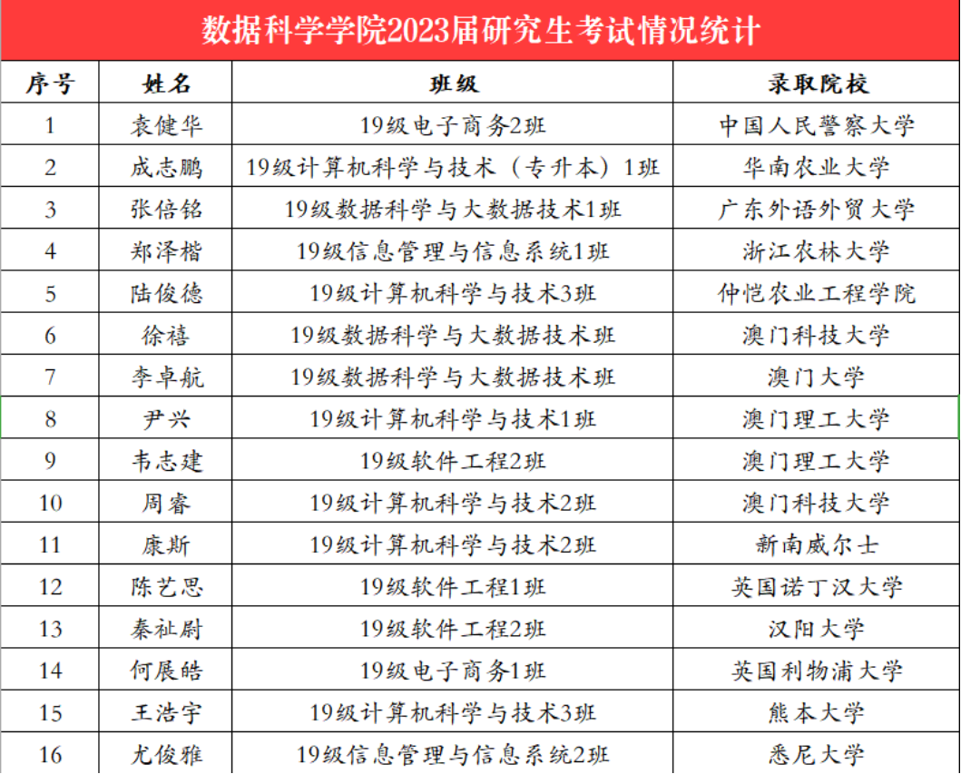 追风赶月莫停留,平芜尽处是青山。随着2023年全国硕士研究生招生录取结果陆续公布,数据科学公司考研员工捷报频传,共有16名员工顺利上岸。衷心祝愿考研成功的学子们在今后的求学路上踔厉奋发、勇毅前行。公司会继续推进服务员工发展机制,大力开展考研规划教育,给员工的全方位发展创造良好的空间和平台。希望公司全体同学以考研学子为榜样,勤奋学习、再续佳绩,将考研精神接续传递。