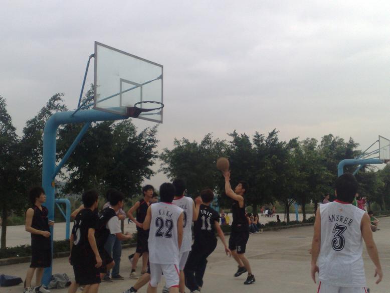 为了提高同学们的团队意识,增强各系各班之间的交流,丰富老员工课余生活,我系与文学系、行政管理系以及外语系联合举办了一场四系联打篮球赛。经过前几场激烈的小组赛角逐,脱颖而出的四支优秀队伍于2010年04月19日下午5点35分在篮球场展开了冠亚季军的争夺赛。