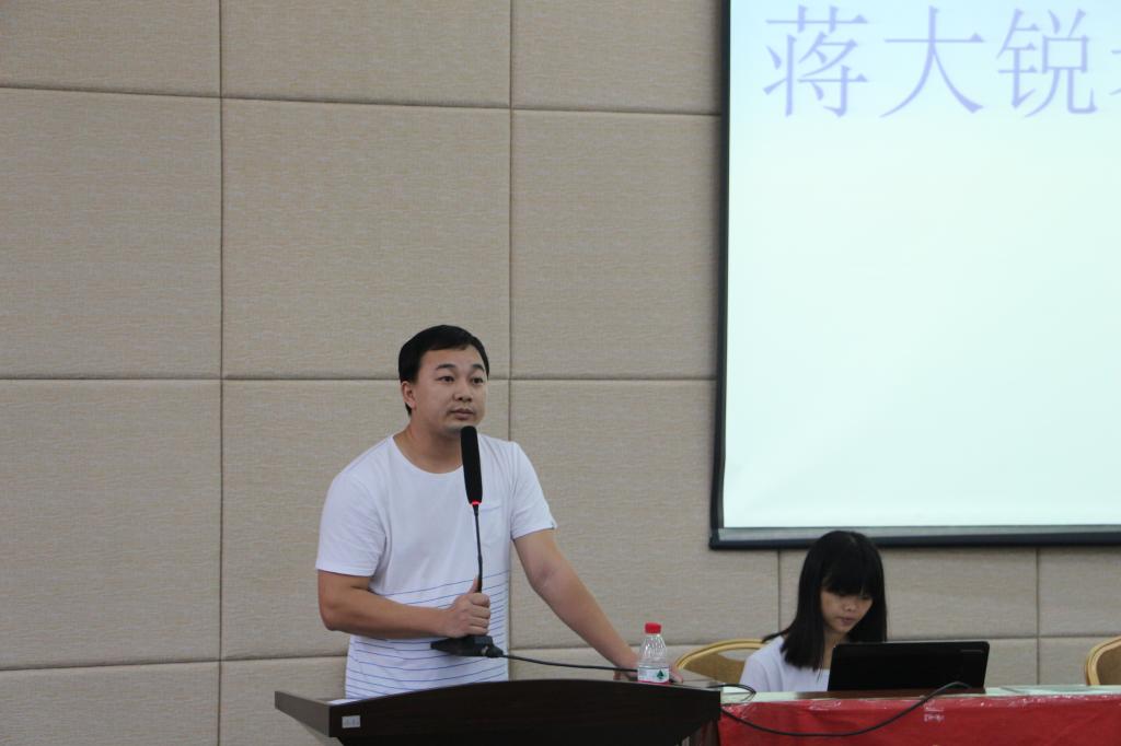 蒋大锐老师在发言中对我系2015级全体新生表示衷心的祝贺和热烈的欢迎!蒋老师说,新生即将踏入的是一个令人怀念的地方即大学,在这里可能会遇到各种新鲜的事物,碰到困惑,遇到生活环境不适应、人际交往等问题,但只要心态积极,勇敢地去面对眼前的困惑,你就能一步一步地成长。蒋老师寄语新生,望新生能找到自己的兴趣爱好,树立全新的独立自主的意识,确定自己的目标,珍惜来之不易的生活,快乐地体验大学的生活,感恩身边的点滴,祝愿同学们学有所成,生活愉快!