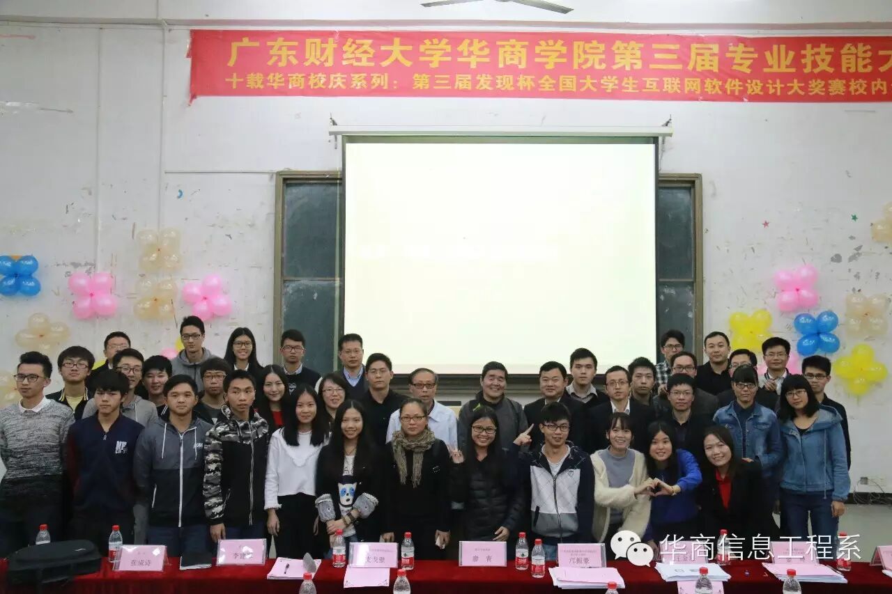 为展示我系专业员工在计算机IT技术方面的专业技能成果,激发员工团队的创新创业意识,2015年12月22日下午3点整,我系第三届专业技能大赛之发现杯全国老员工互联网软件设计大奖赛校内选拔赛,在励志楼B207顺利举行。出席本次选拔赛的领导嘉宾以及评委有:广东财经大学华商公司支戈壁副经理,信息工程系李建军主任,科研处张成诗处长,教务处学籍科段晓聪科长,广州太阳城集团IT部廖青总监,广东财经大学华商公司实验管理中心曾志区副主任,广东东软睿道教育有限公司项目组工程师邝振豪先生,广州传智播客公司安卓APP技术老师王金泉先生和金坤先生,广东中星控股集团股份有限公司副总裁李伟阶先生,广东中星控股集团股份有限公司软件事业部总监董福发先生,以及信息工程系全体教师等。