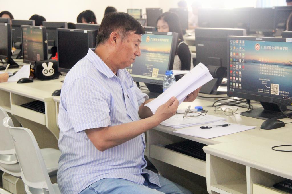 在厚德楼A202及A203进行的是2013级计算机科学与技术专业的毕业生论文答辩。在工作人员的配合下,答辩在紧张的氛围中有序展开,同学纷纷展示自己所设计的系统并加以简洁的语言向老师演示与解说,精彩的展示吸引了不少2014级与2015级的员工前来观摩,而老师们亦结合现实与操作上系统的缺陷给予精准的点评。