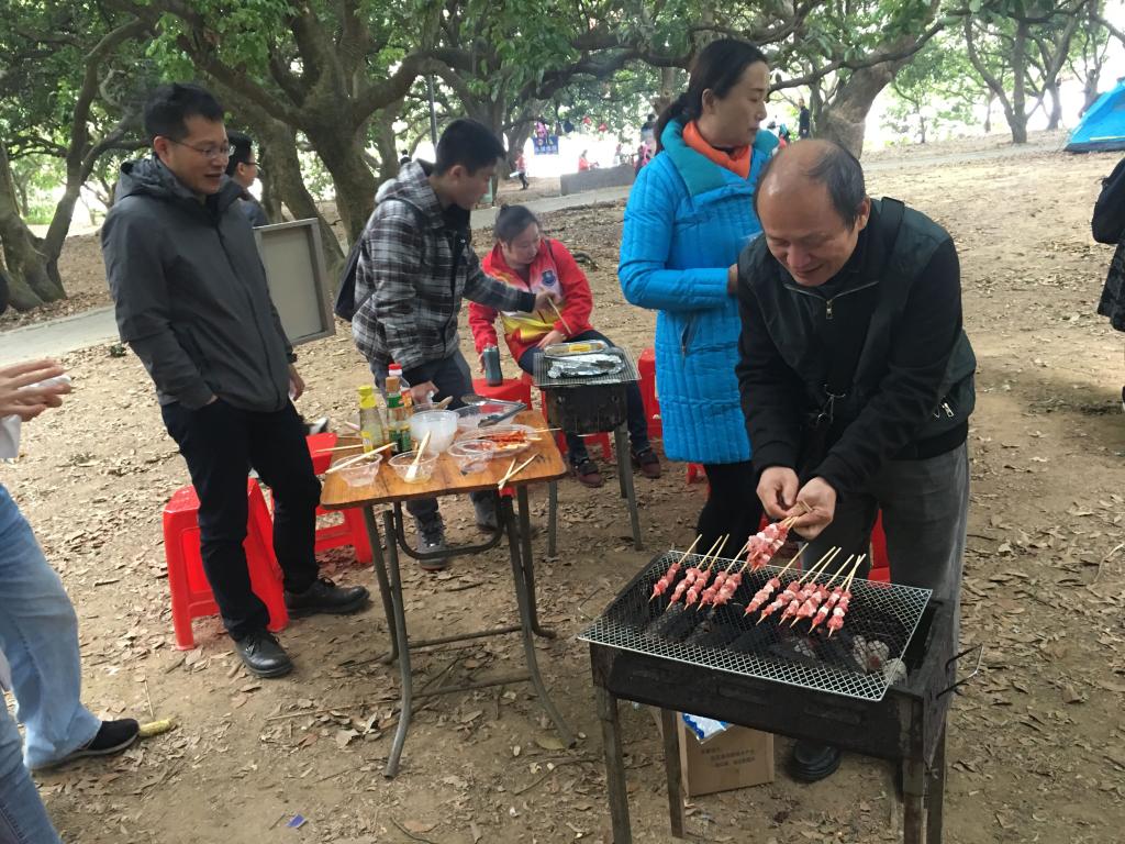 首先,大家来到增城鹤之洲湿地公园,忙前忙后分工合作搭起烧烤架洗好食物开始充当“大厨”,在主任的带领下大家动起手一起将新鲜食材变成美味。