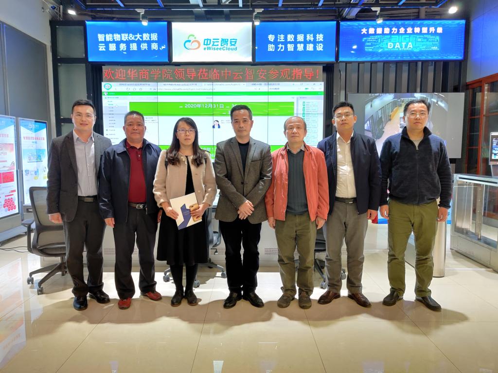 2020年1月2日下午,华商公司董事长助理黄伟新、余家军,数据科学公司常务副经理赖庆、经理助理肖绍洪,计算机教研室主任许丽娟一行5人赴广东中云智安科技有限公司参观交流。广东中云智安科技有限公司谢秋明董事长、杨文周副总经理等企业领导热情接待。