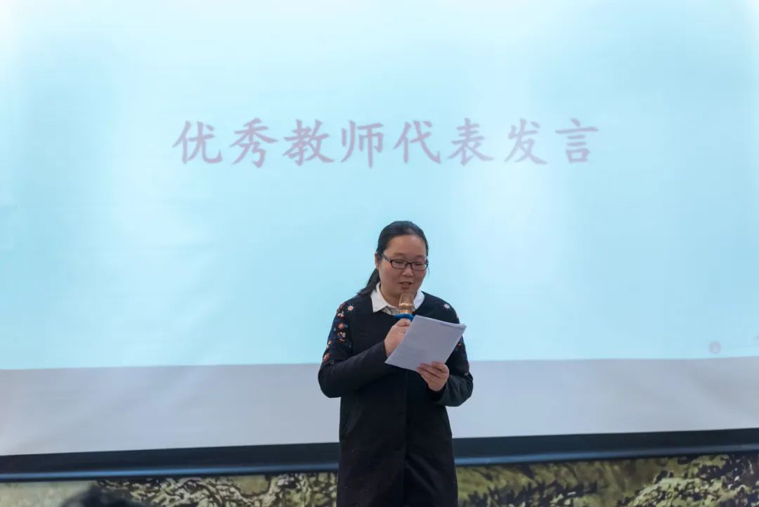 随后,杨莉云作为优秀教师代表进行发言。首先她向一直关心、支持我们的各位领导表示最衷心的感谢,其次她分享了个人在教学、教研等方面的心得体会,并表示将不负使命,继续潜心教学,直面挑战,精进教学方法,提高教学质量。以更高的标准严格要求自己,虚心学习他人长处,不断提高和完善自我,提升专业素养,为公司教育事业发展添砖加瓦。