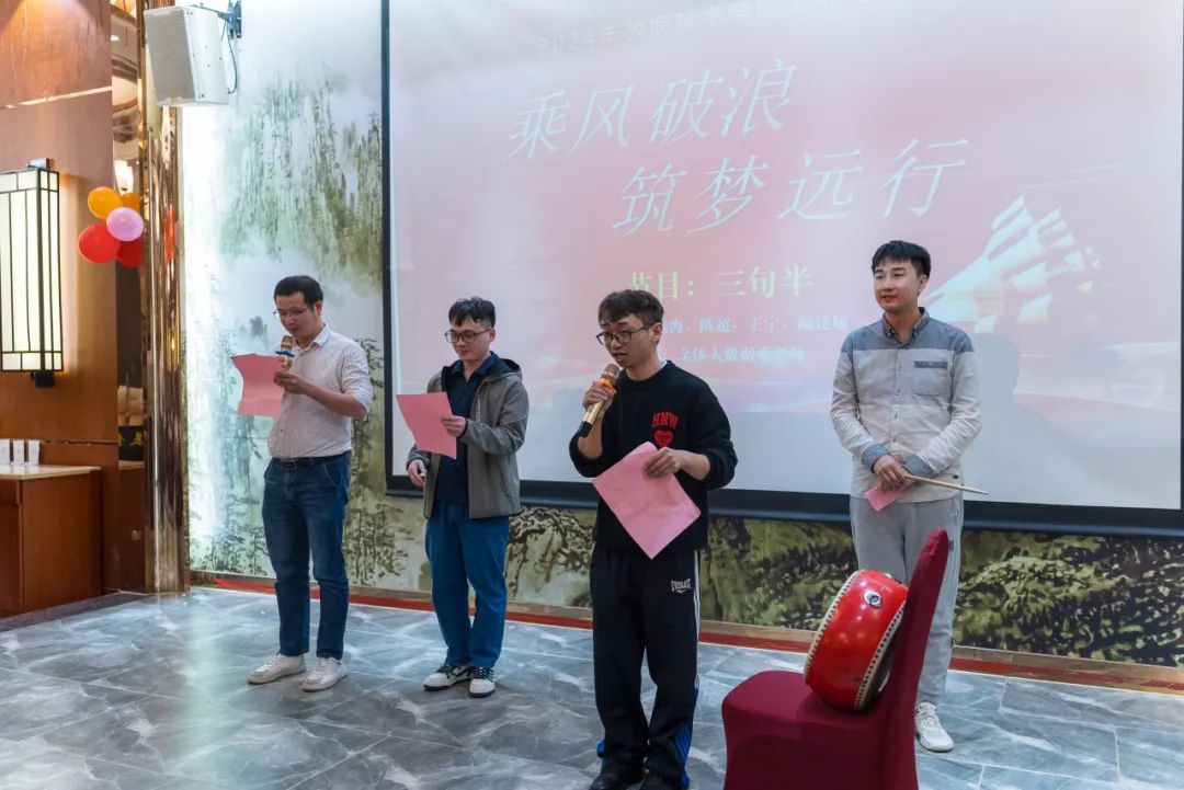 在团拜会环节,各系老师纷纷登台献艺,展示了各自的才艺和风采。节目形式多样,包括歌曲,器乐演奏,诵读演唱等,现场气氛热烈,欢声笑语不断。大家不仅展示了个人才华,也增进了彼此之间的了解和友谊。团拜会还设置了一系列互动游戏和抽奖环节,让现场氛围更加活跃。通过这些游戏和抽奖活动,大家不仅收获了欢笑和快乐,也增进了彼此之间的默契和团队协作精神。