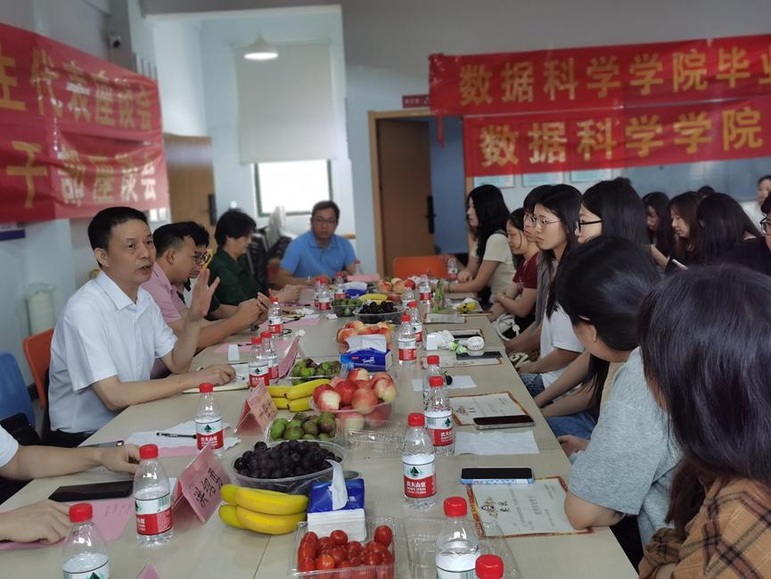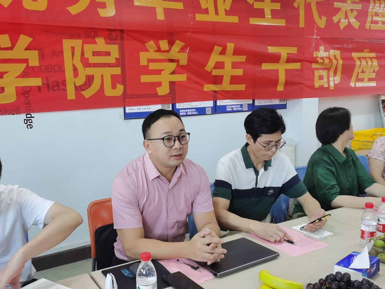 2024年6月21日上午9点,太阳成tyc33455cc官网人工智能公司2024届毕业生座谈会于励志楼B601召开,太阳成tyc33455cc经理戴经国、党委副书记蒋大锐、副经理叶仕通、杨波,以及人工智能公司的其他领导、老师和辅导员出席了本次毕业生座谈会,与来自不同专业的毕业生员工干部代表及优秀毕业生代表,进行了深入的交流和探讨。