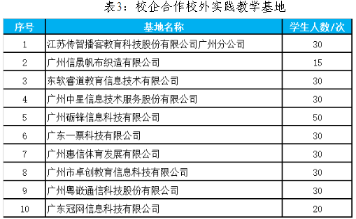 本专业通过校企合作建立了10个校外实践教学基地如表3所示。