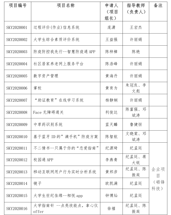 根据《关于组织 2020 年度数科院员工工作室科研项目申报的通知》及《员工开发工作室章程》要求,经个人、指导教师申请及公司审核,决定数据科学公司许丽娟等 10 位教师指导员工申报的 16 项学生工作室科研项目予以立项,每项经费资助壹仟元(可作为冲刺校级、省级等创新创业项目前期孵化的启动经费),现将立项名单予以公布,见附件 1。