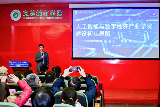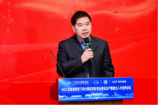 广州理工公司教授贺敏伟作了题为“产教融合人工智能与数字经济产业公司建设实践”的主旨报告,指出在数字经济和人工智能快速发展的背景下,产教融合已成为高校与产业共同关注的焦点,要以证引教、以赛促学,通过构建更加完善的产教融合机制,共同推进数字经济和人工智能领域的人才培养与技术创新。