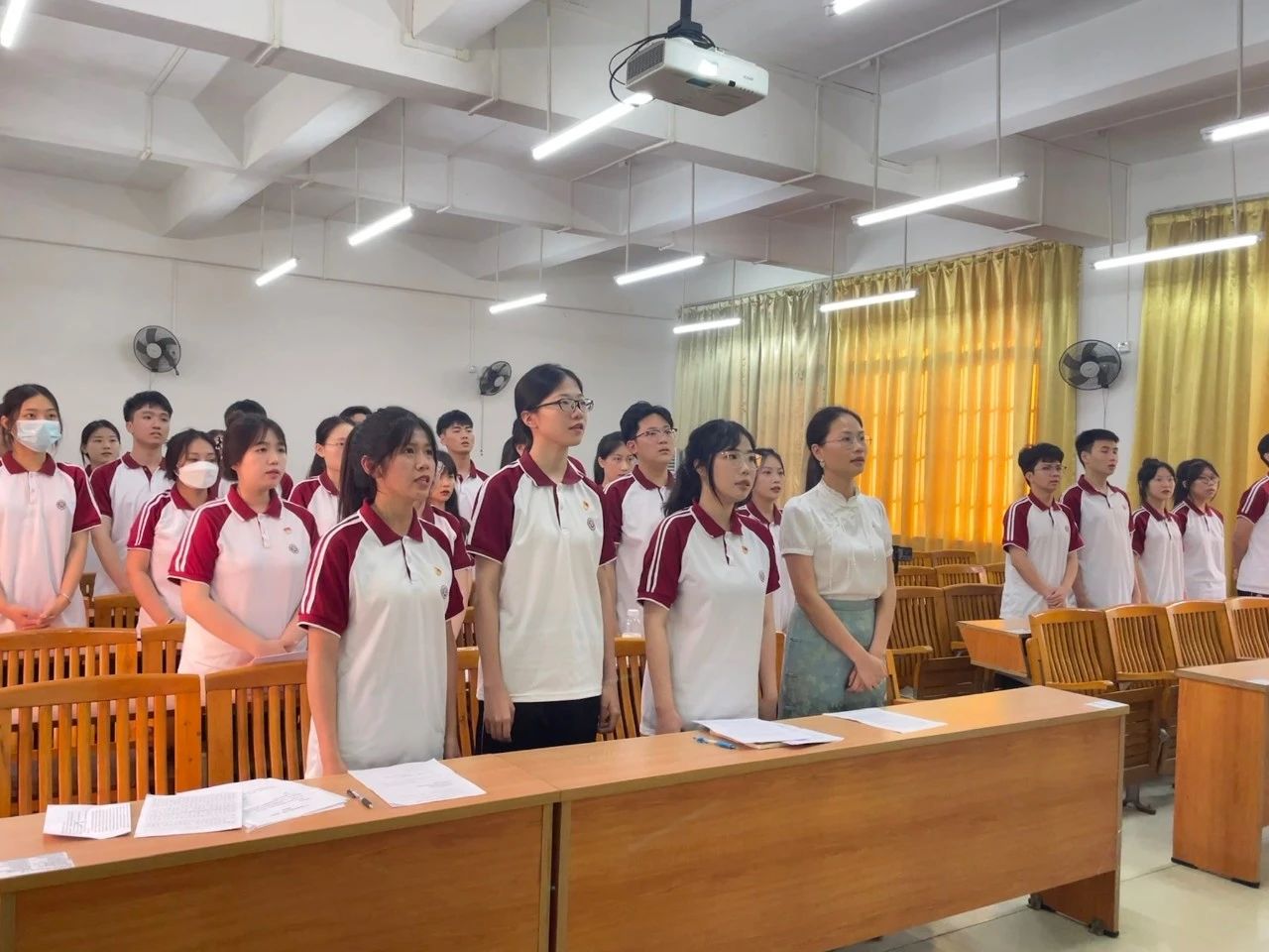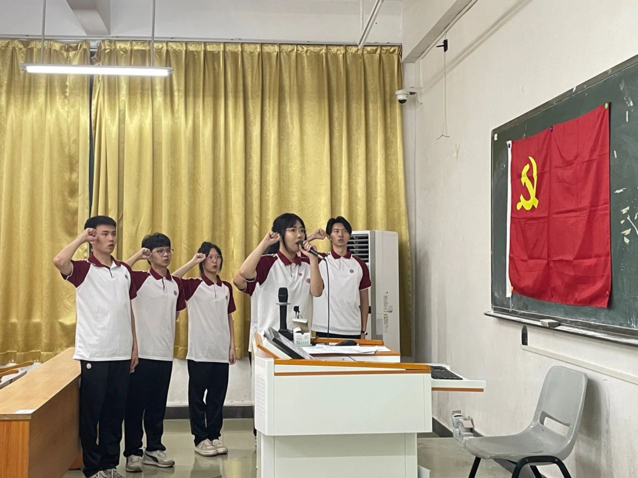 在施宛菁同志的带领下,新党员宣读入党誓词。入党誓词:我志愿加入中国共产党,拥护党的纲领,遵守党的章程,履行党员义务,执行党的决定,严守党的纪律,保守党的秘密,对党忠诚,积极工作,为共产主义奋斗终身,随时准备为党和人民牺牲一切,永不叛党。
