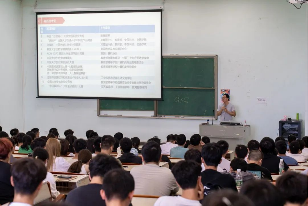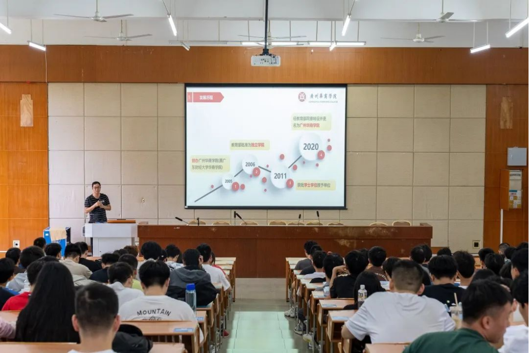 黄主任从集团概况、数据科学公司概况、计算机科学与技术专业概况、课程设置、就业形势等方面进行介绍,详细介绍了计算机科学与技术专业的人才培养方案,课程建设情况,实践教学的条件,学科竞赛,考取证书,以及课程体系等方面的信息,通过思维导图重点介绍了所有课程的先修与后修的关系,勉励同学们强化自身学科知识,深入打磨专业技术,激励同学们树立远大的理想,确定学习目标,制定适合自己的学习计划,努力学习。