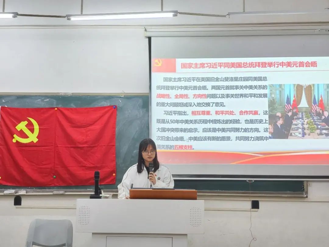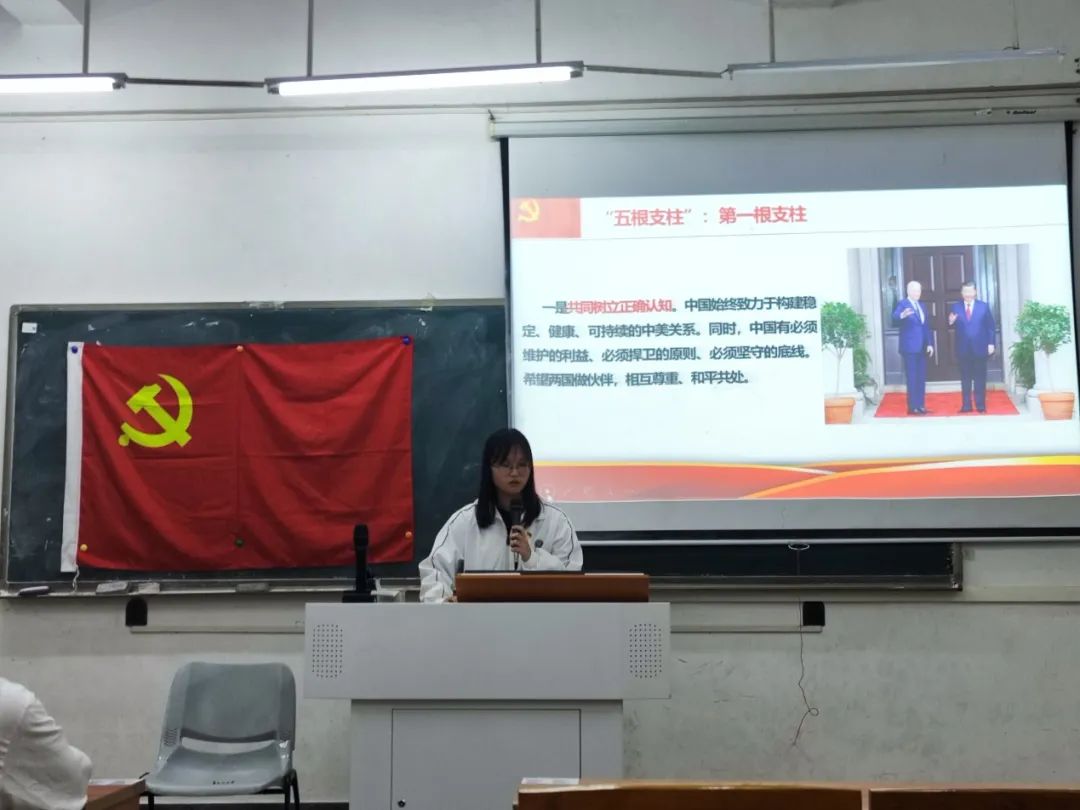 为紧紧围绕中美关系的战略性、全局性、方向性问题以及事关世界和平和发展的问题,深刻学习相互尊重、和平共处、合作共赢历程中提炼出的经验。数据科学公司员工第三党支部于2023年12月6日18:30在励志楼D102开展“中美元首会晤”党日主题活动。出席本次会议的有数据科学公司员工第三党支部书记吴诗雨老师、支部全体党员,会议由黄秋格同志主持。