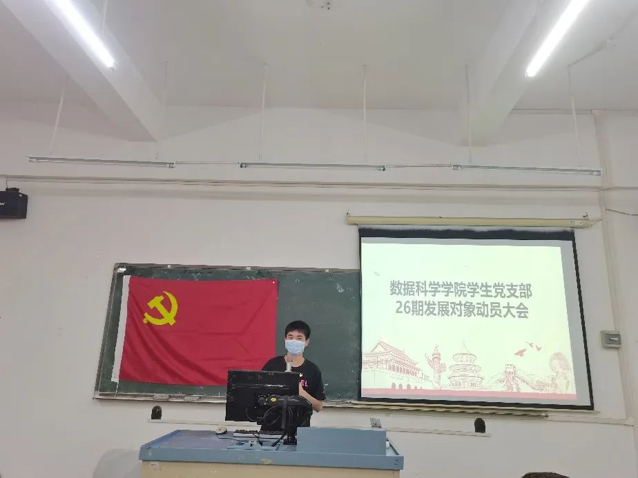 为进一步打牢党员发展工作基础,切实提高发展对象培训工作的质量,数据科学公司员工党支部于2022年5月12日晚17:50在励志楼D202顺利召开了第26期发展对象党课培训动员大会。出席本次大会的有数据科学公司员工第三党支部书记官志豪老师、各员工党支部支委会成员以及第26期发展对象。本次大会由彭明信同志主持。