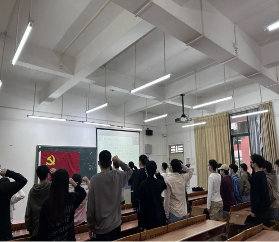 各新旧党员在黎灿荣同志的带领下,以饱满的热情,严谨的态度,举起右拳,面向党旗,庄严宣誓,声音洪亮,整齐有力。此时此刻,他们精神抖擞,意志坚定。重温党员誓词,不忘入党初心。
