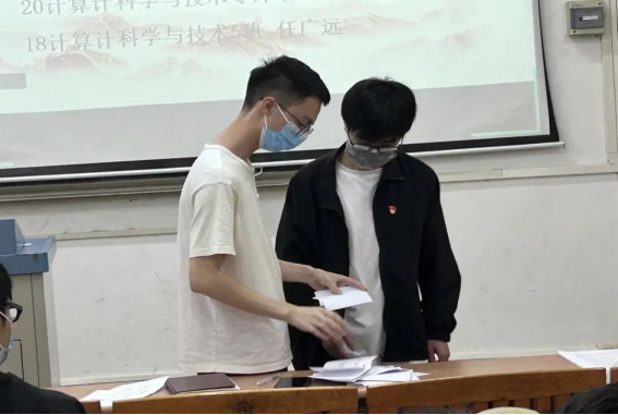 黄家业、刘焕芳、罗恬、彭楚珊、任广远,这五位同志分别汇报完自己在预备期间的表现后,同时结合班上同学的分享。大会的正式党员对预备党员这五位同志是否具备转正条件发表了意见和建议,综合各正式党员的意见和最终无记名投票表决,一致同意五位同志按期转为正式党员。