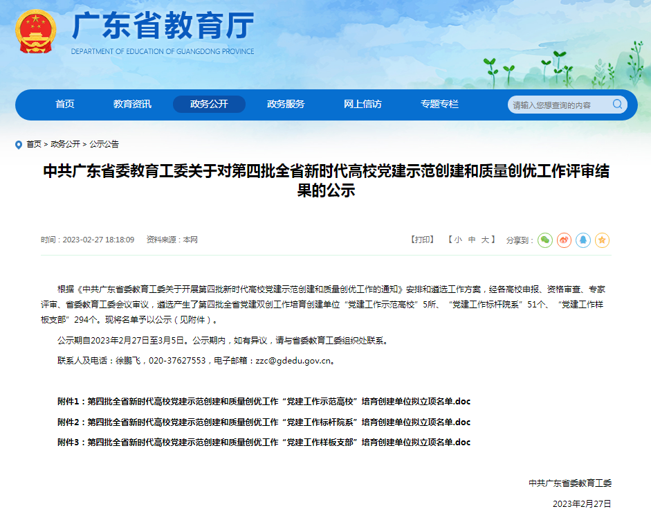 根据《中共广东省委教育工委关于开展第四批新时代高公司党建示范创建和质量创优工作的通知》安排,经各高校申报、资格审查、专家评审、省委教育工委会议审议,遴选产生了第四批全省党建双创工作培育创建单位“党建工作示范高校”5所、“党建工作标杆院系”51个、“党建工作样板支部”294个。其中,公司数据科学公司员工第一党支部获评“党建工作样板支部”。