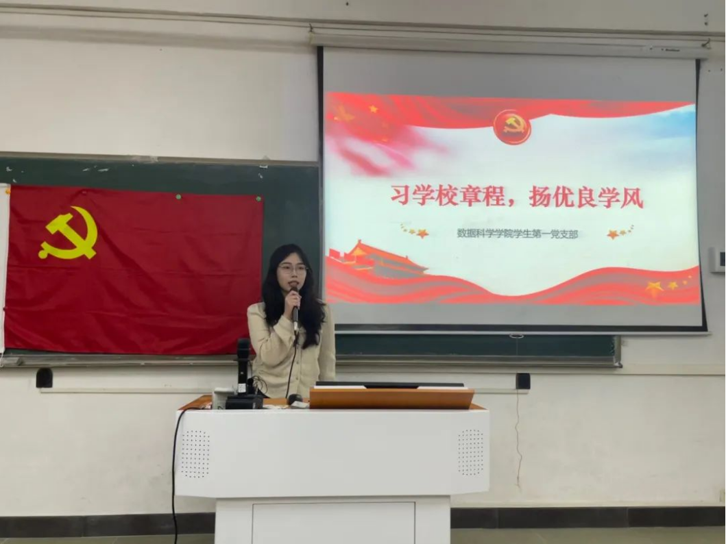 2023年11月20日17:45数据科学公司员工第一党支部于励志楼D102开展“学习公司章程,发扬优良学风”专题学习会。出席本次会议的有数据科学公司员工第一党支部全体在校员工党员。本次会议由施宛菁同志主持。