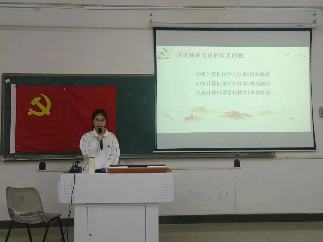 接着,由黄珮恩同志报告申请转正的预备党员的审查、公示等情况。