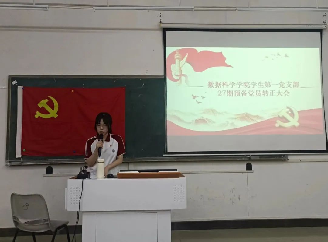 2023年12月2日17:45,数据科学公司员工第一党支部在励志楼D104顺利召开第27期预备党员转正大会。出席本次会议的有数据科学公司员工第一党支部书记裴祖君老师以及数据科学公司员工第一党支部全体在校员工党员。本次大会由施宛菁同志主持。