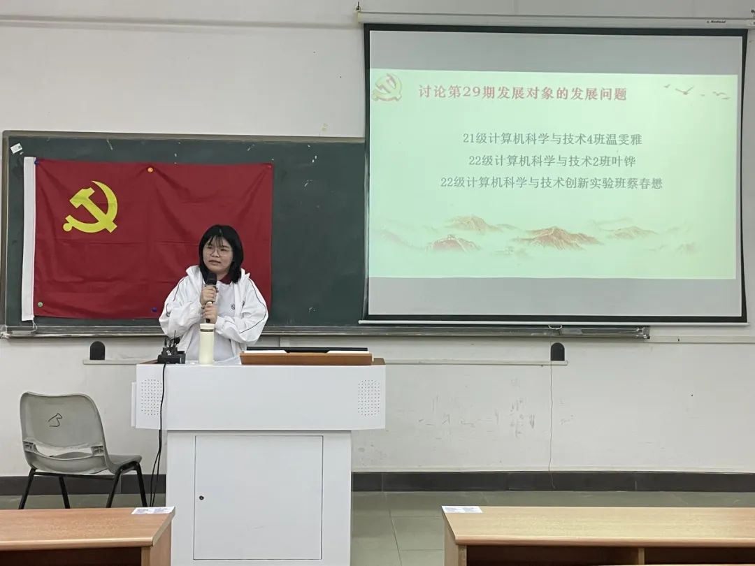 接着,由黄珮恩同志报告本期发展对象的综合考察、政治审查及公示等情况。