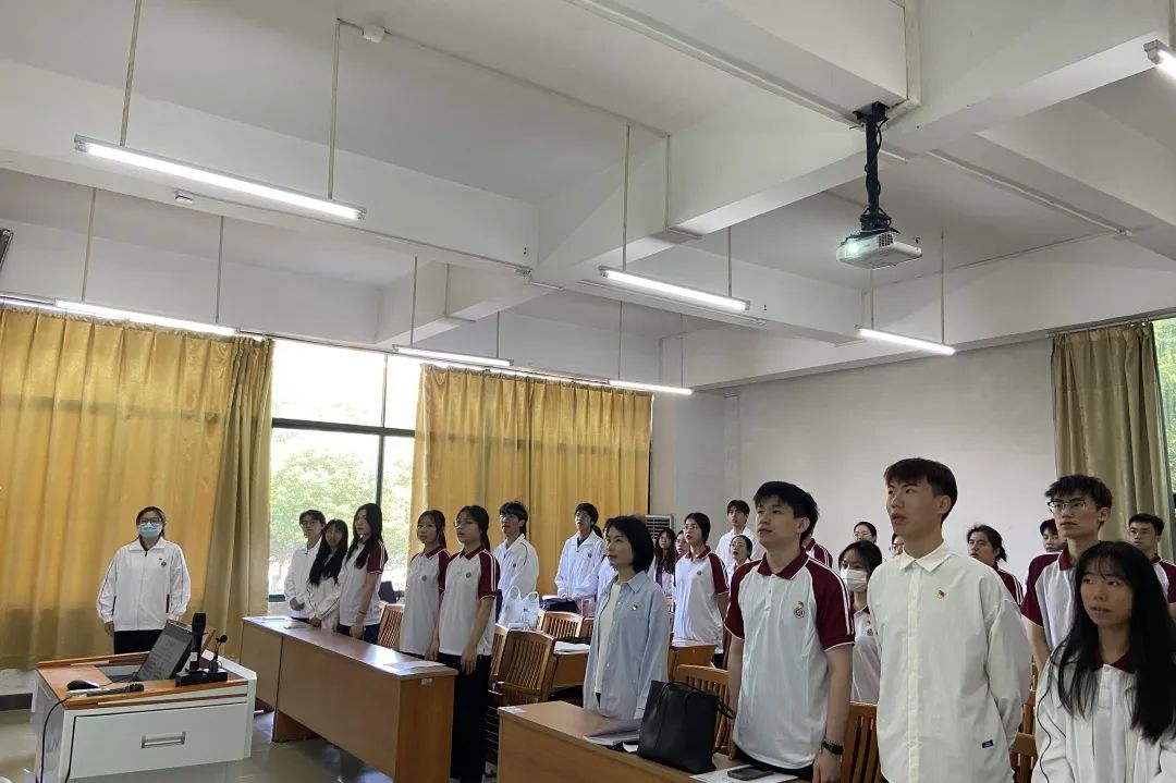 在吴彬同志的带领下,全体党员同志宣读入党誓词。入党誓词:我志愿加入中国共产党,拥护党的纲领,遵守党的章程,履行党员义务,执行党的决定,严守党的纪律,保守党的秘密,对党忠诚,积极工作,为共产主义奋斗终身,随时准备为党和人民牺牲一切,永不叛党。