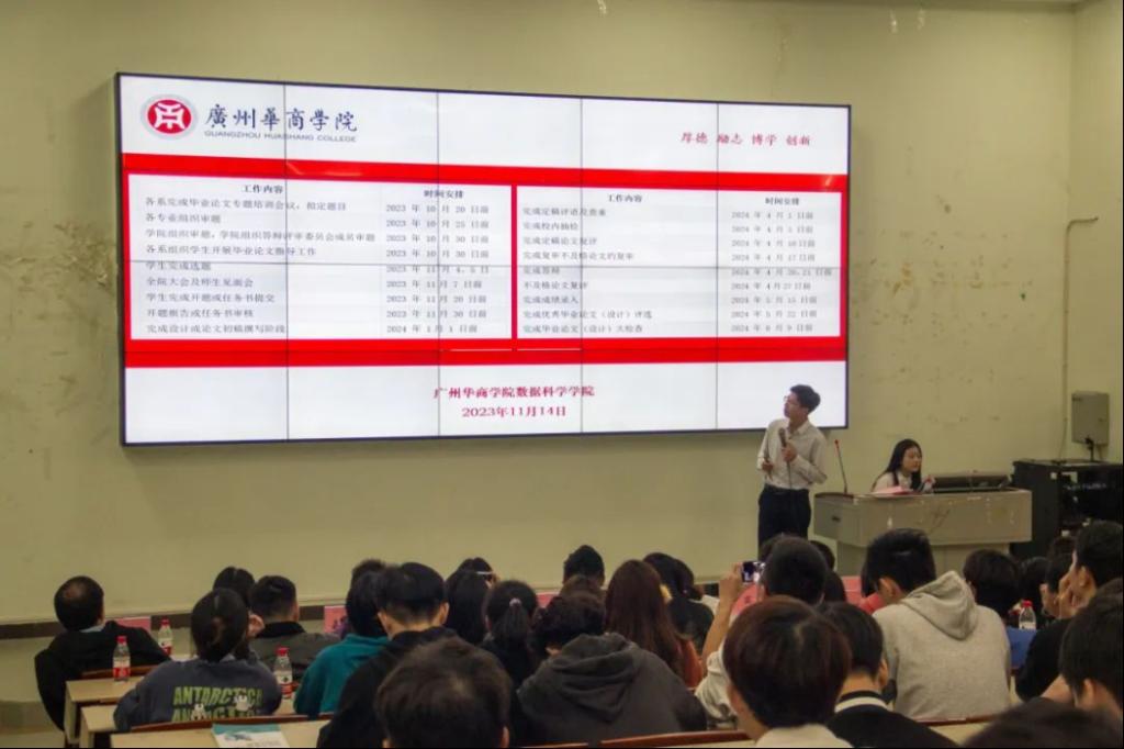 由数据科学公司经理助理杨波开展进行毕业论文/设计、毕业实习工作动员。他主要从毕业论文/设计的进度安排、筹备阶段、开题阶段、论文撰写过程以及答辩进行讲解,强调了不同进展中需要注意的相关事项,加强了各位毕业生对如何顺利开展并完成毕业论文/设计进行的深入了解。