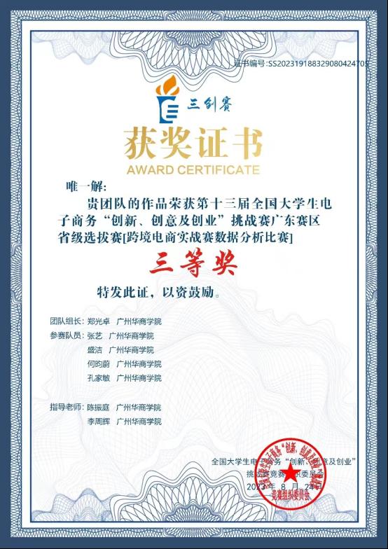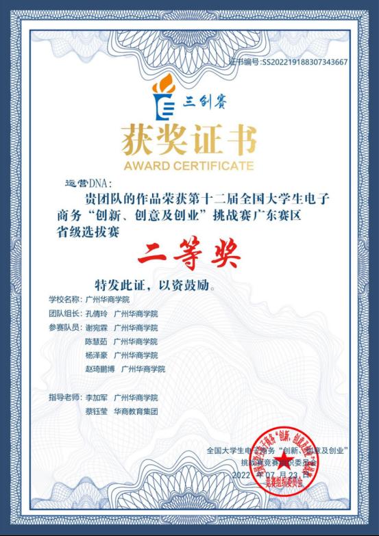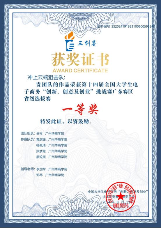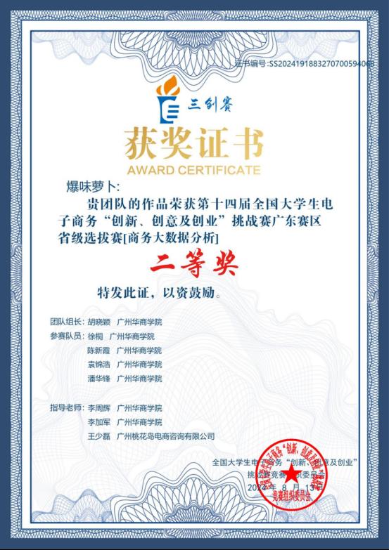 在2024年的产教融合竞赛舞台上,公司员工表现抢眼,成果斐然。在备受瞩目的三创赛中,公司员工团队凭借出色的创新能力和实践技能,荣获省级“一等奖”1项、“二等奖”2项以及“三等奖”1项的优异成绩。此外,太阳成tyc33455cc电商系的员工洪培桐和郭子琪,在公司与广州桃花岛电商咨询有限公司的联合指导下,以省赛第一名的绝对优势晋级2024年全国轻工互联网营销师职业技能大赛全国总决赛,并最终斩获“二等奖”,为公司和广东省争光添彩。