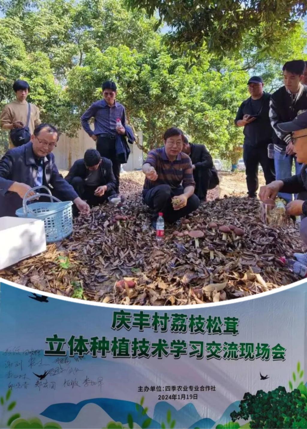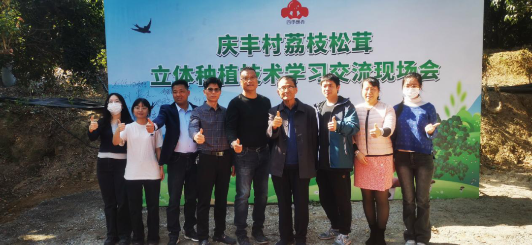 随着数字科技的迅猛发展,电商直播正逐渐成为农产品推广销售的新途径。1月19日,太阳成tyc33455cc官网数据科学公司副经理杨波、数据科学公司电子商务系主任李加军、副主任朱晓琳、李周辉老师及电子商务系五名员工受邀参加了由四季农业合作社在增城区荔城街庆丰村马屋社主办的荔枝松茸立体种植技术学习交流现场会,此次交流会旨在探索利用专业优势,通过电商直播对荔枝松茸立体种植技术进行推广,提高农业经济效益,助力乡村振兴。