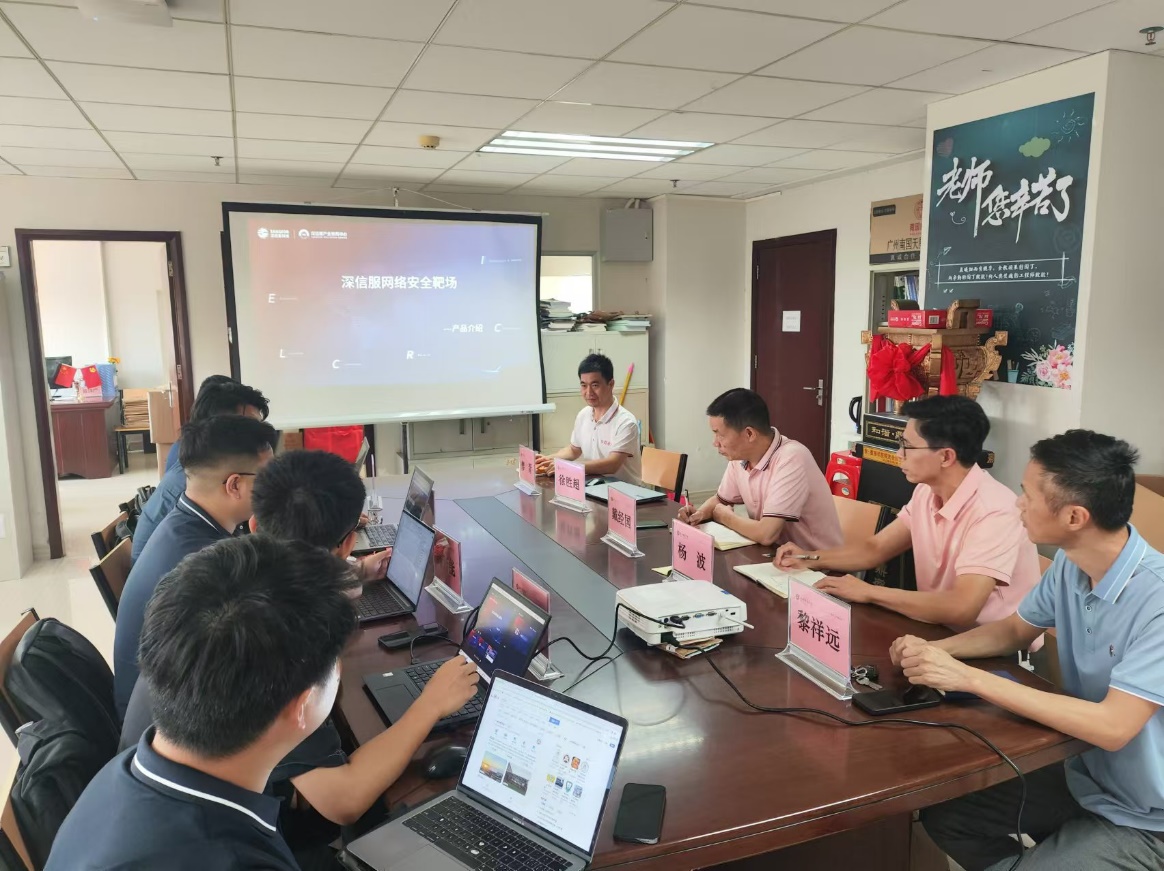 会议由戴经国经理主持,首先深信服公司徐聪经理介绍了网络安全靶场、网络攻防实验平台、网络攻防演练平台和网络攻防竞赛平台等解决方案,然后双方就产教融合、网络攻防实验室建设、学科竞赛等领域进行了深入的交流,最后就人才培养、实验室建设达成多项共识。