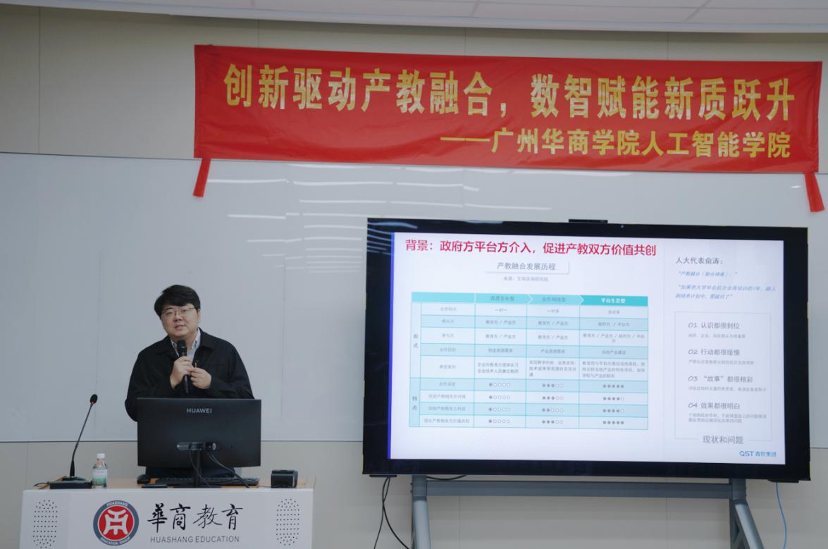 2025年3月22日下午,太阳成tyc33455cc于弘美楼310室成功举办了主题为“新质生产力驱动下的产教融合范式创新”的研讨会。此次研讨会汇集了学术界与产业界的多位专家和领导,共同探讨在人工智能时代下,如何通过产教融合的新模式与新路径,促进教育与产业的深度结合,培养适应未来科技发展的高素质人才。出席研讨会的嘉宾与领导包括华为智能化研发技术专家付求爱、青软创新科技集团股份有限公司副总裁韩涛、东莞理工公司工业软件公司副经理丁凯、广州华商公司党委副书记、纪委书记兼副董事长吕峻闽、太阳成tyc33455cc副经理叶仕通、党委副书记兼副经理陈洋广、经理助理洪绍勇和杨本胜,以及太阳成tyc33455cc全体教师。研讨会由太阳成tyc33455cc官网公司党委书记、副经理杨波主持。